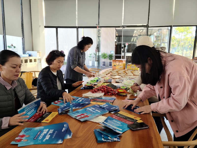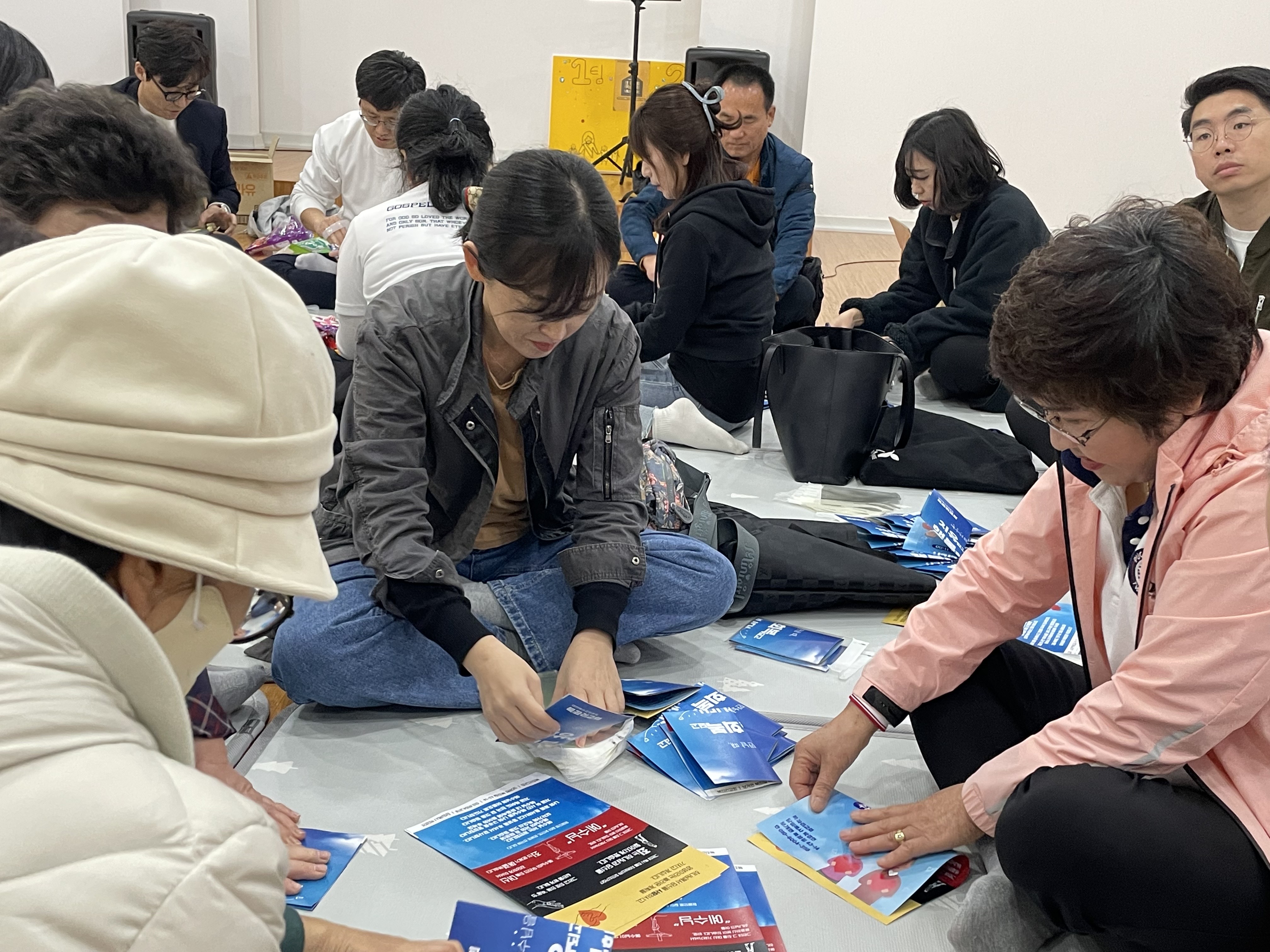 웃고, 즐기며 전도 물품을 포장하는 시간 내내