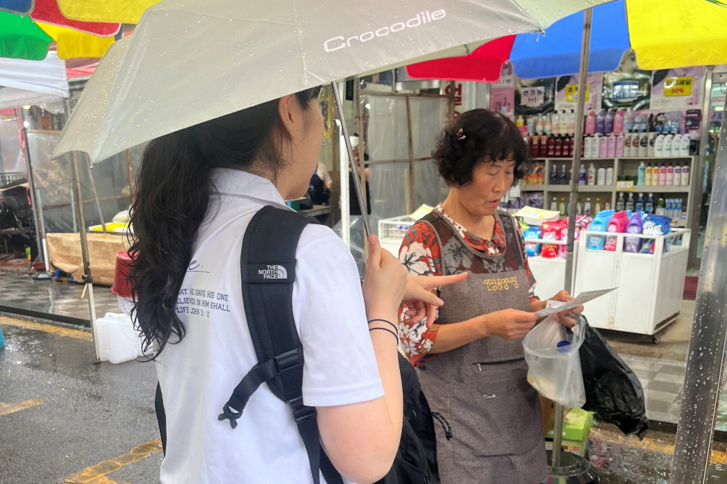 장사를 잠깐 멈추시고 앉으셔서 전도지를 읽으시는 한 영혼의 눈빛,
