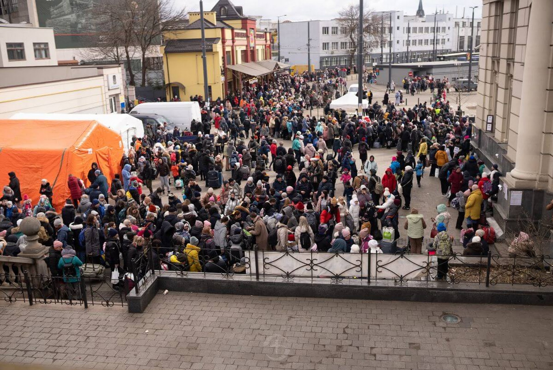 우크라이나 사람들은 포탄을 피해 피란 길을 떠나고 있습니다.