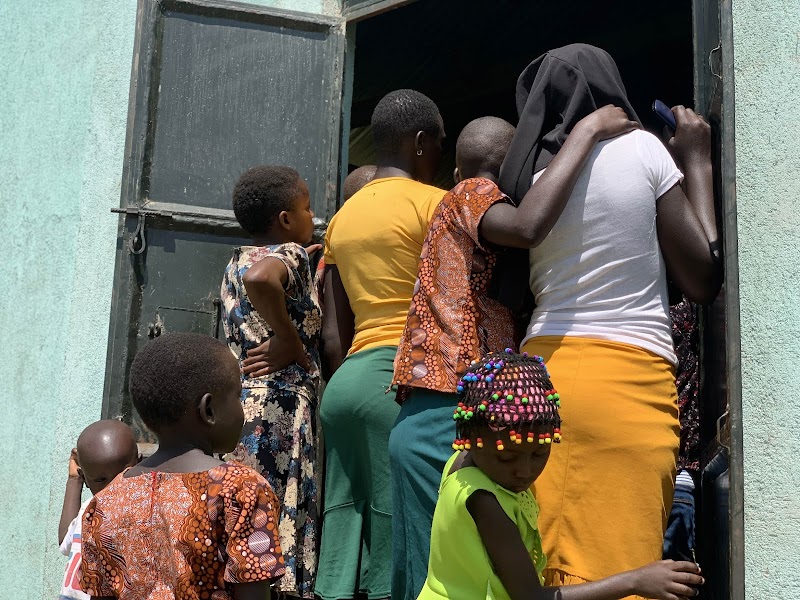 부수마 교회 근처로 몰려든 여인들과 아이들